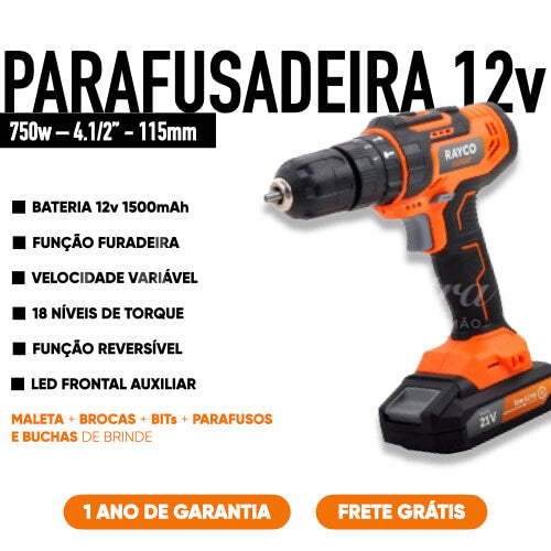 4. Parafusadeira/Furadeira a Bateria 12V – RAYCO